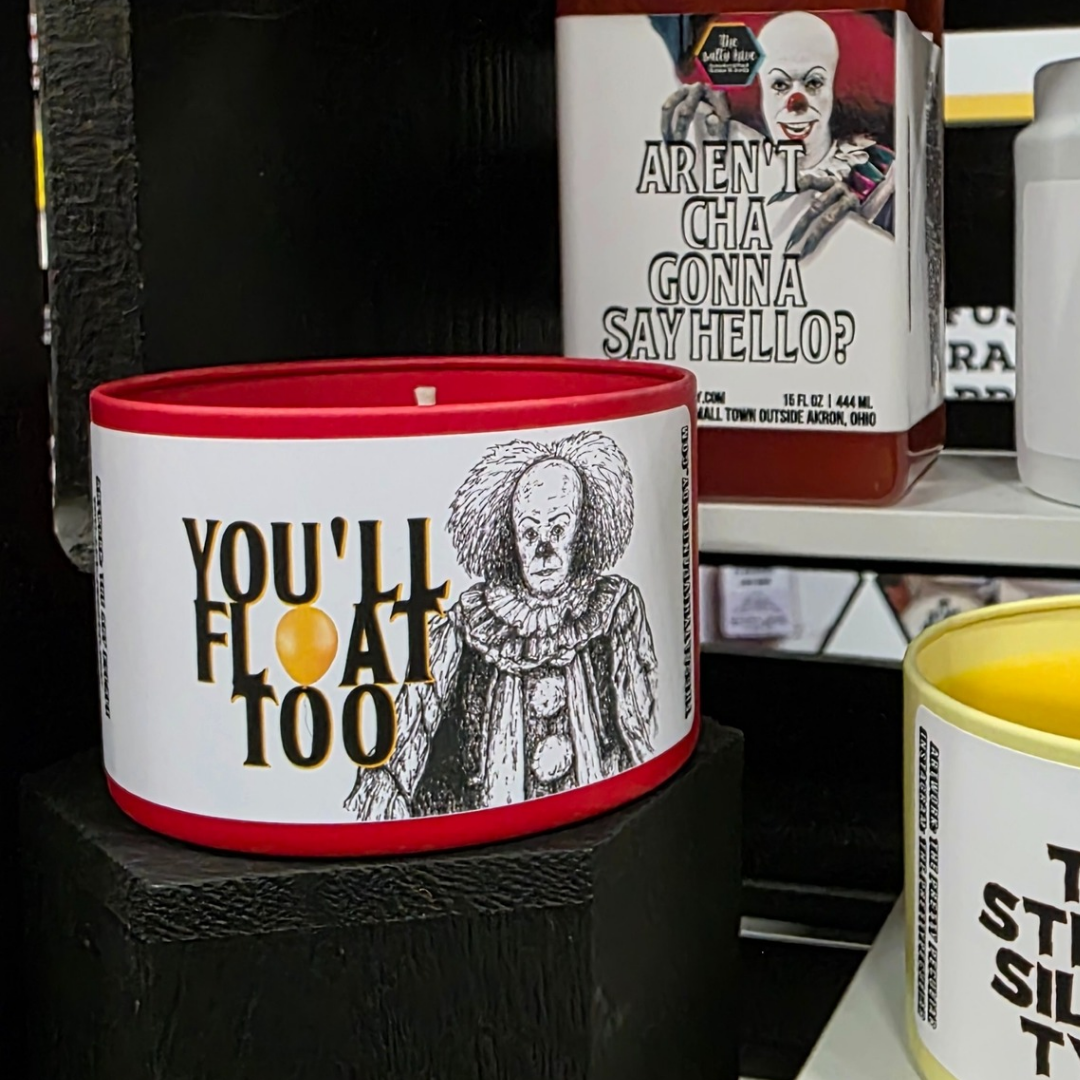 put a little fright into your home with a aren't cha gonna say hello? candle! experience a terrifyingly tasty treat with notes of apples, berries, and cheesecake. get your clownish giggle on and prepare to be delighted & terrified all at once!