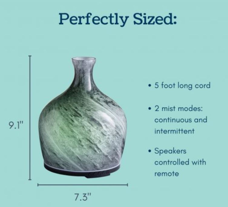 transform any room into a tranquil oasis with our bluetooth ultra sonic obsidian diffuser. the hand blown gourd-vase shape, in shades of black, white, and grey, adds a touch of elegance. with dimmable light, remote control, and the ability to pair with our new oil blends, relaxation is just a click away!
