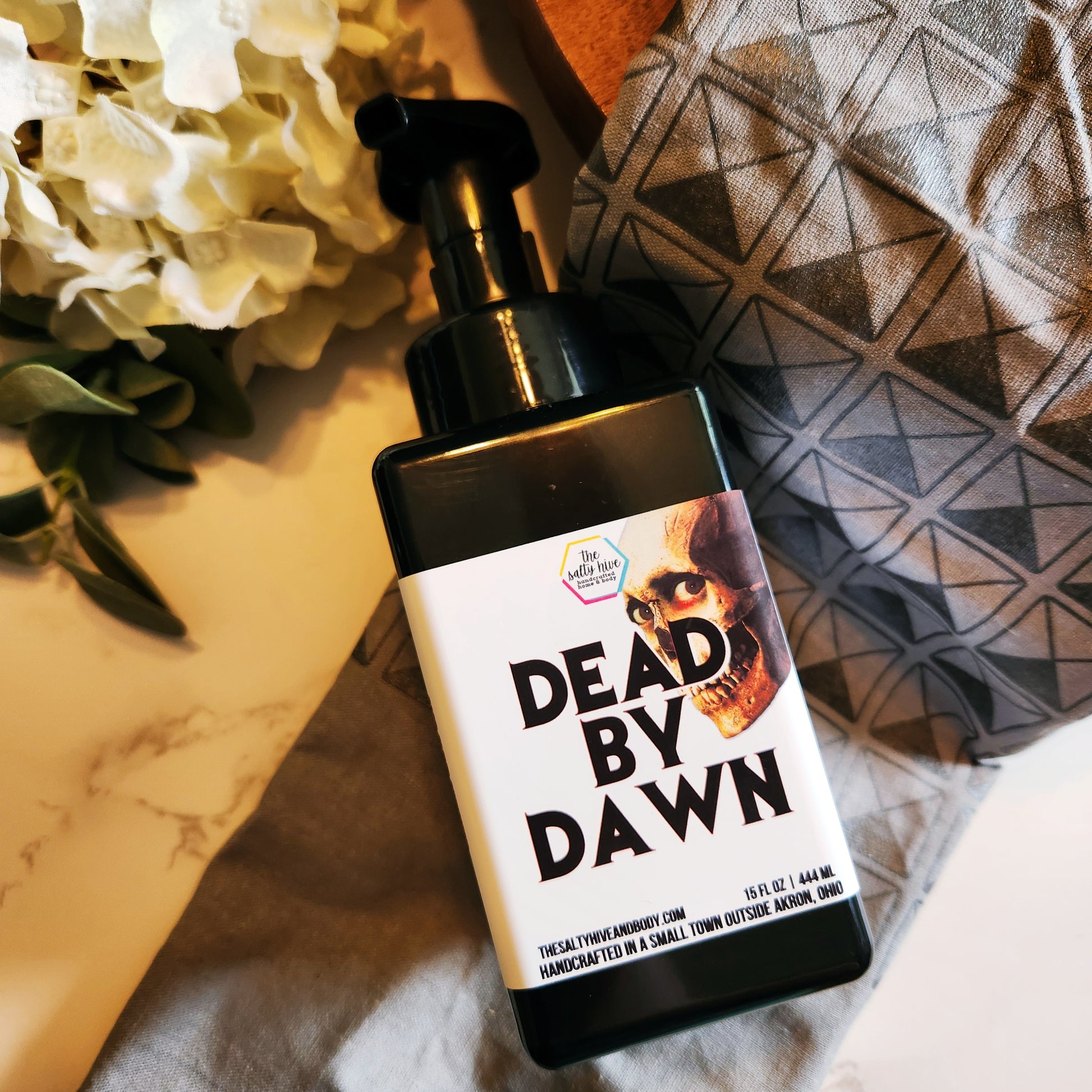 keep both you & your hands safe from evil with our dead by dawn foaming hand soap! this delightfully spicy foamy soap featuring a label inspired by the evil dead films is sure to get rid of any nasties (and deadites!) you have lurking around. oh, and it'll leave your hands feeling nice and clean too.