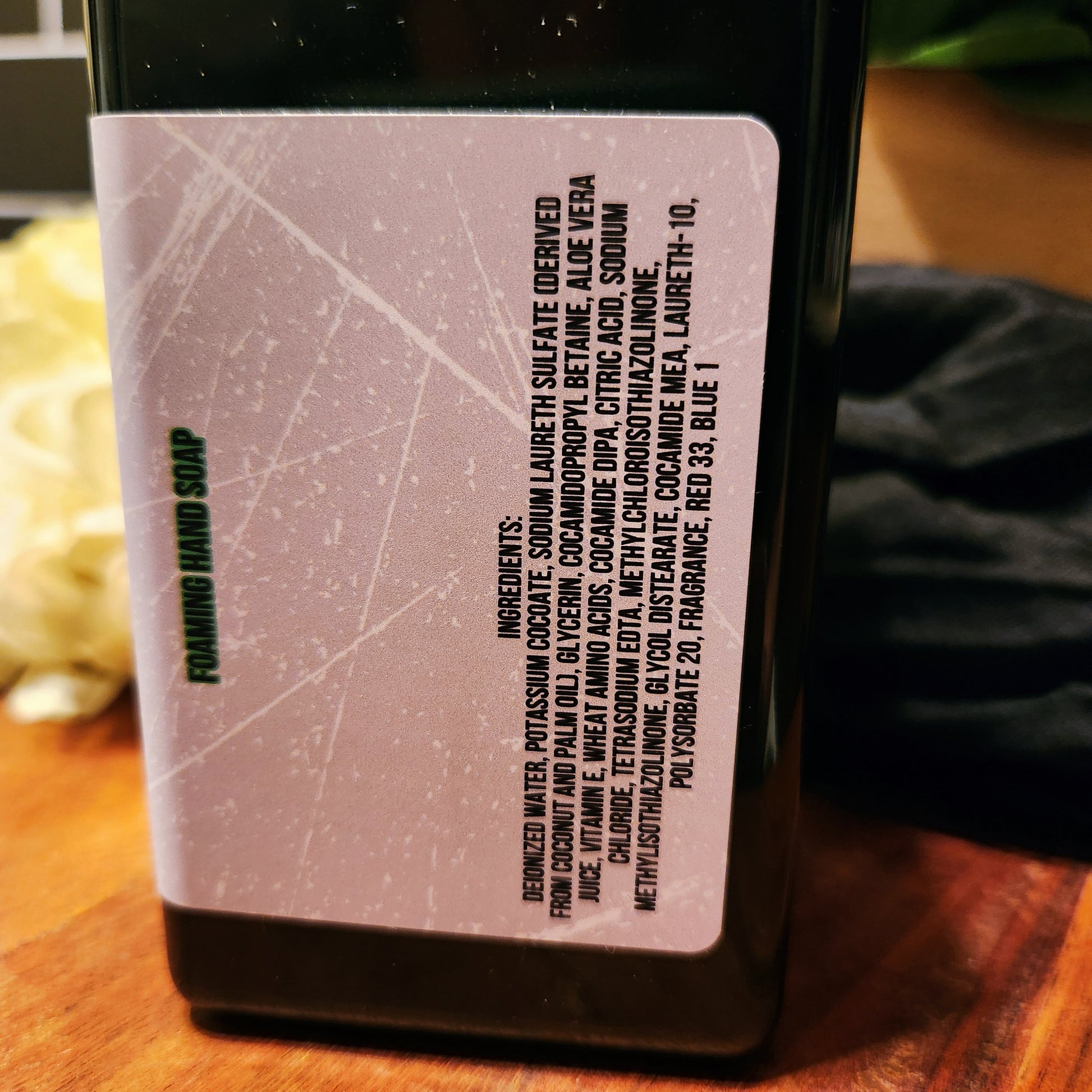 ingredients: deionized water, potassium cocoate, sodium laureth sulfate (derived from coconut and palm oil), glycerin, cocamidopropyl betaine, aloe vera juice, vitamin e, wheat amino acids, cocamide dipa, citric acid, sodium chloride, tetrasodium edta, methylchloroisothiazolinone, methylisothiazolinone, glycol distearate, cocamide MEA, laureth-10, polysorbate 20, fragrance, colorant (see photos for specified colorant)