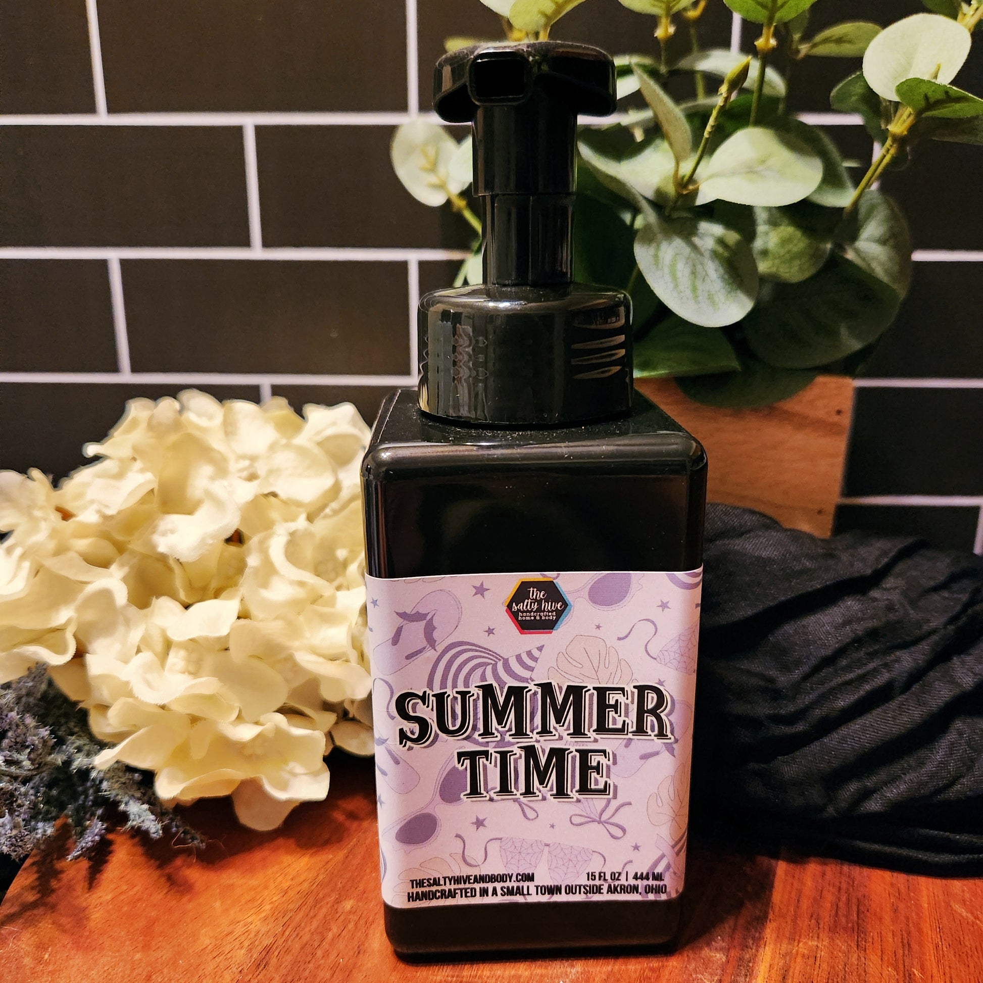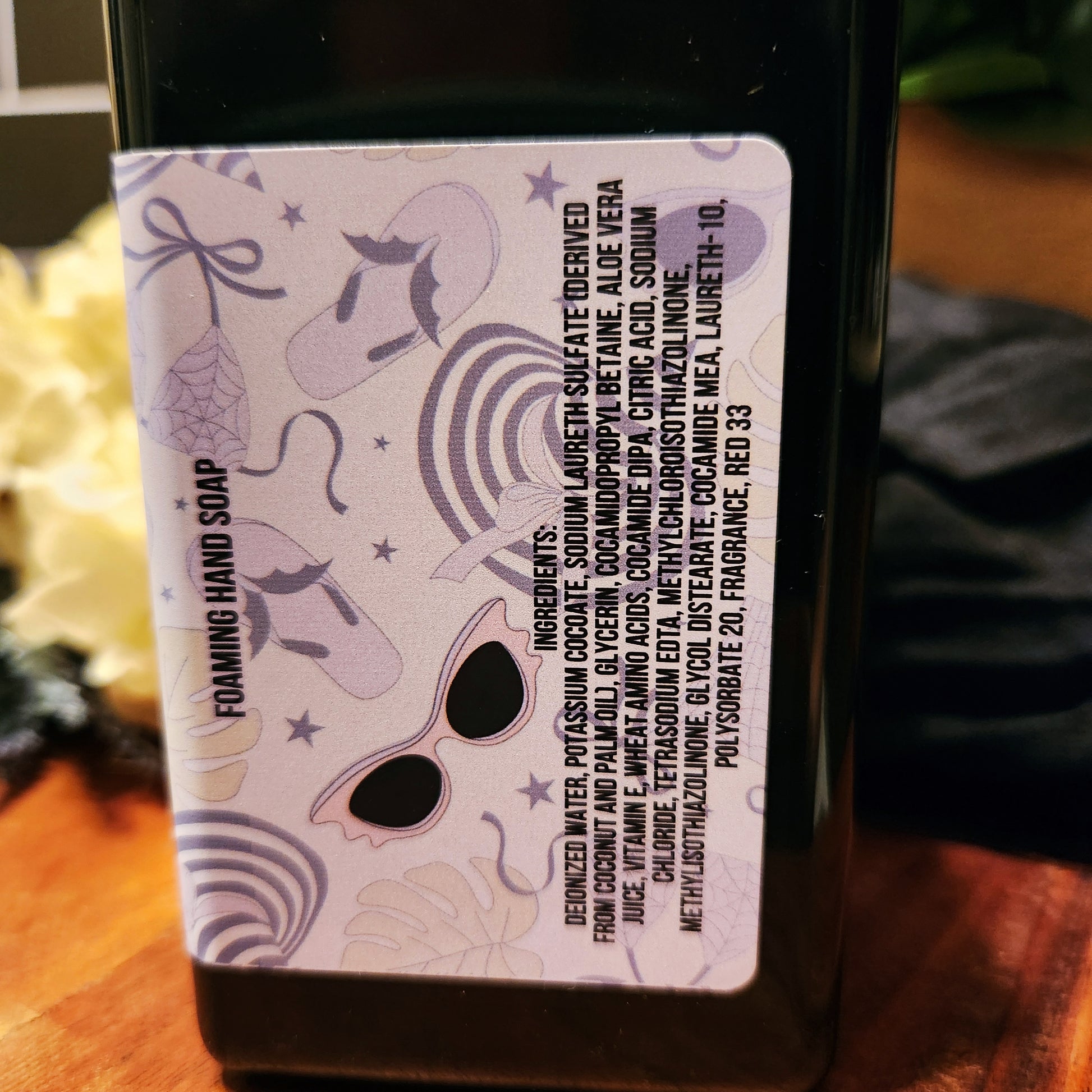 get in the summer spirit with our foaming hand soap! infused with the scents of spooky summer, refreshing lemonade, calming lavender, and invigorating mint, this soap will make hand-washing a delight. perfect for adding some fun to your daily routine. wash on, friends!